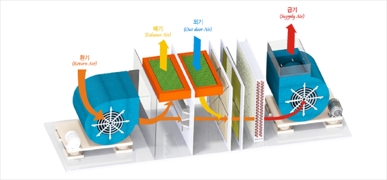 공조기 내부에 장착으로 급ㆍ배기 덕트의 위치에 관계없이 설치가 편리함